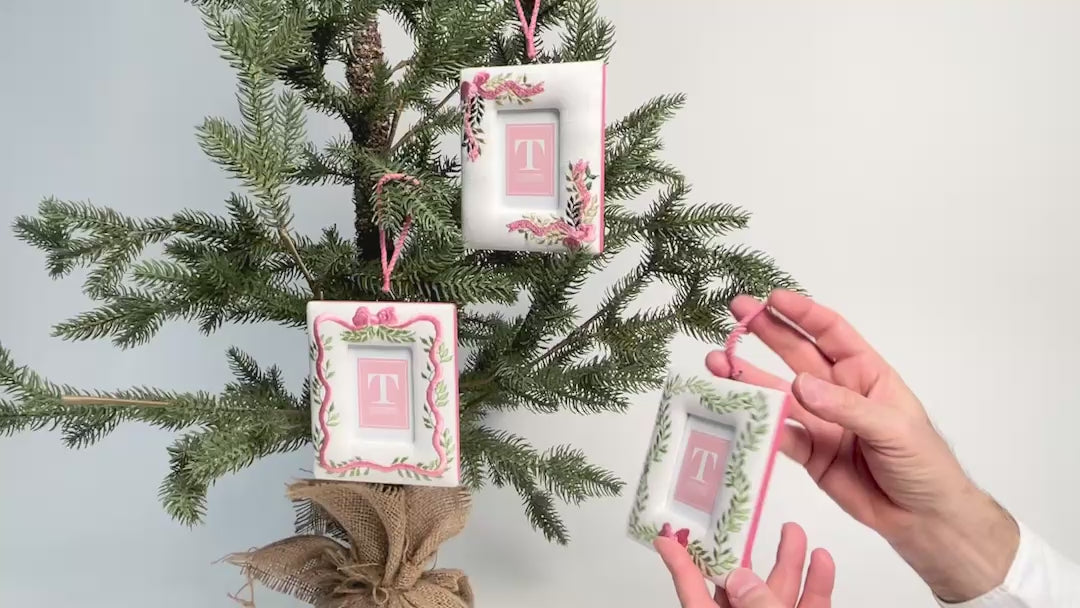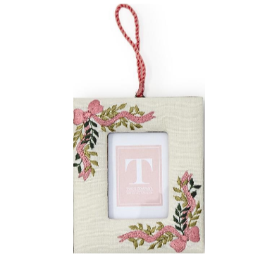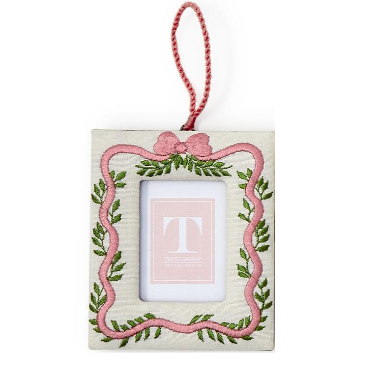These charming hanging frames feature delicate embroidered details that add a festive and decorative touch to any tree. Designed to showcase a small photo or keepsake, each frame is finished with a coordinating ribbon for easy hanging, making them a lovely addition to a tree, wreath, or wall display.