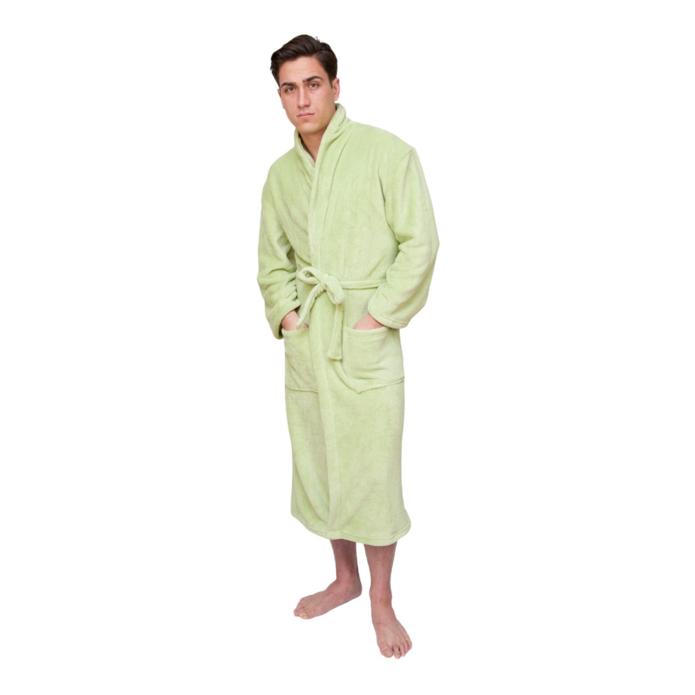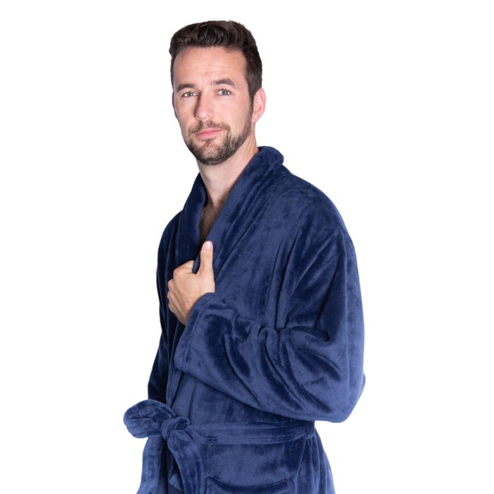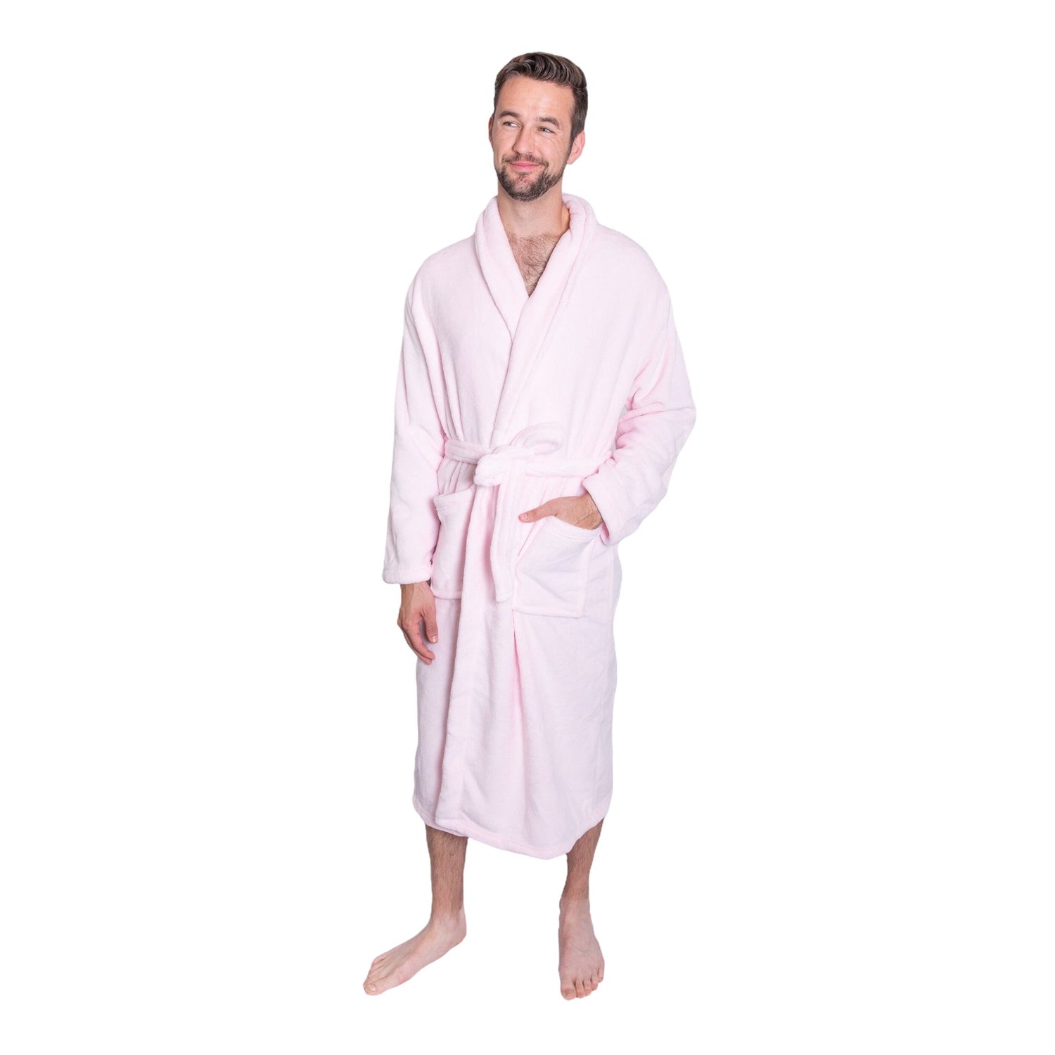 Our Men’s Plush Robes are made from an indulgent poly-plush material and feature a warm shawl collar, double pockets, and an adjustable waist tie, so it’s perfect for year-round lounging. Because we know that special man in your life has a style all his own, these robes are also available in a variety of colors including White, Charcoal Gray, Silver, Navy Blue, Red, Light Green, and 2 shades of Pink.