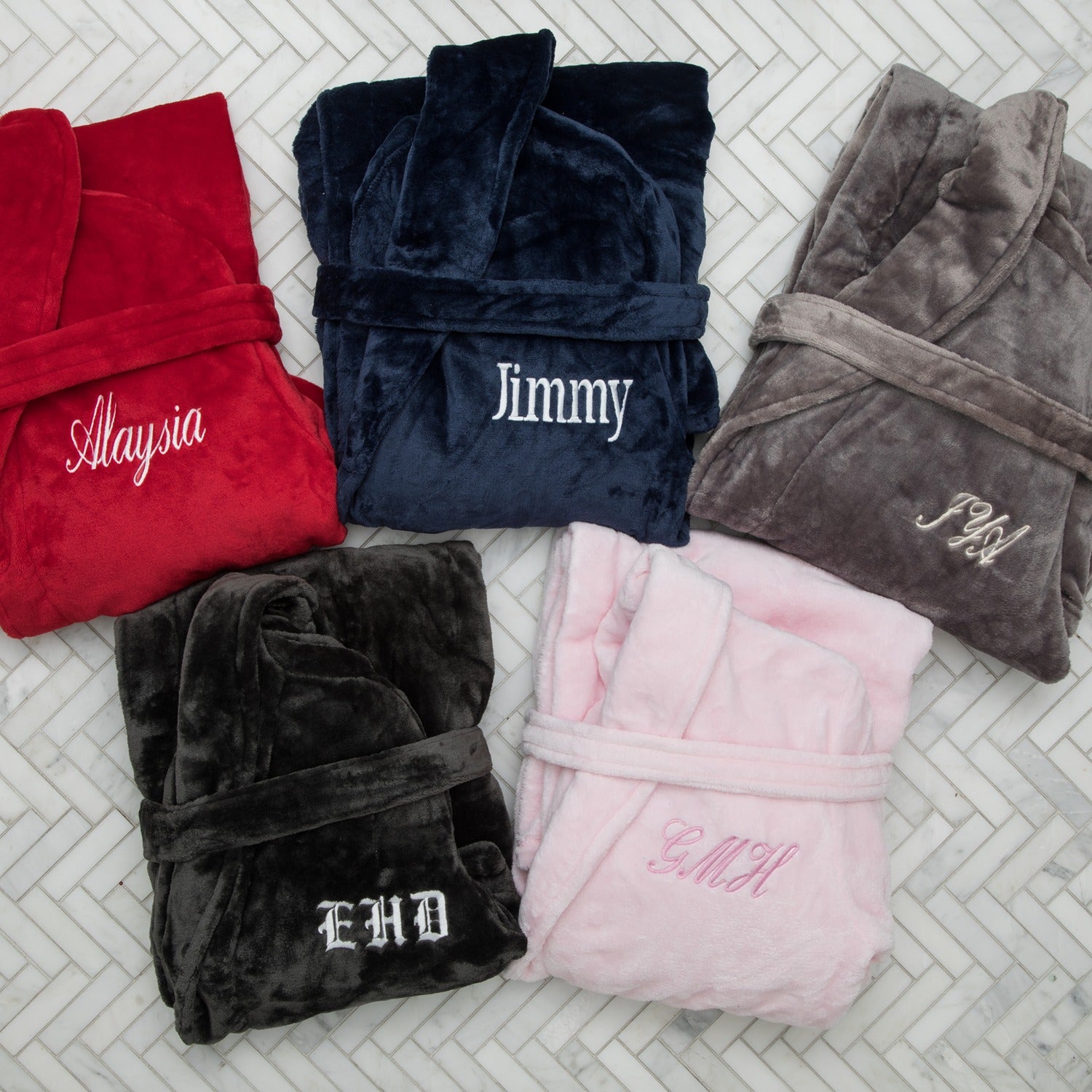 We offer two different types of embroidered robes for men: Men’s Plush Robes and Signature Spa Robes.