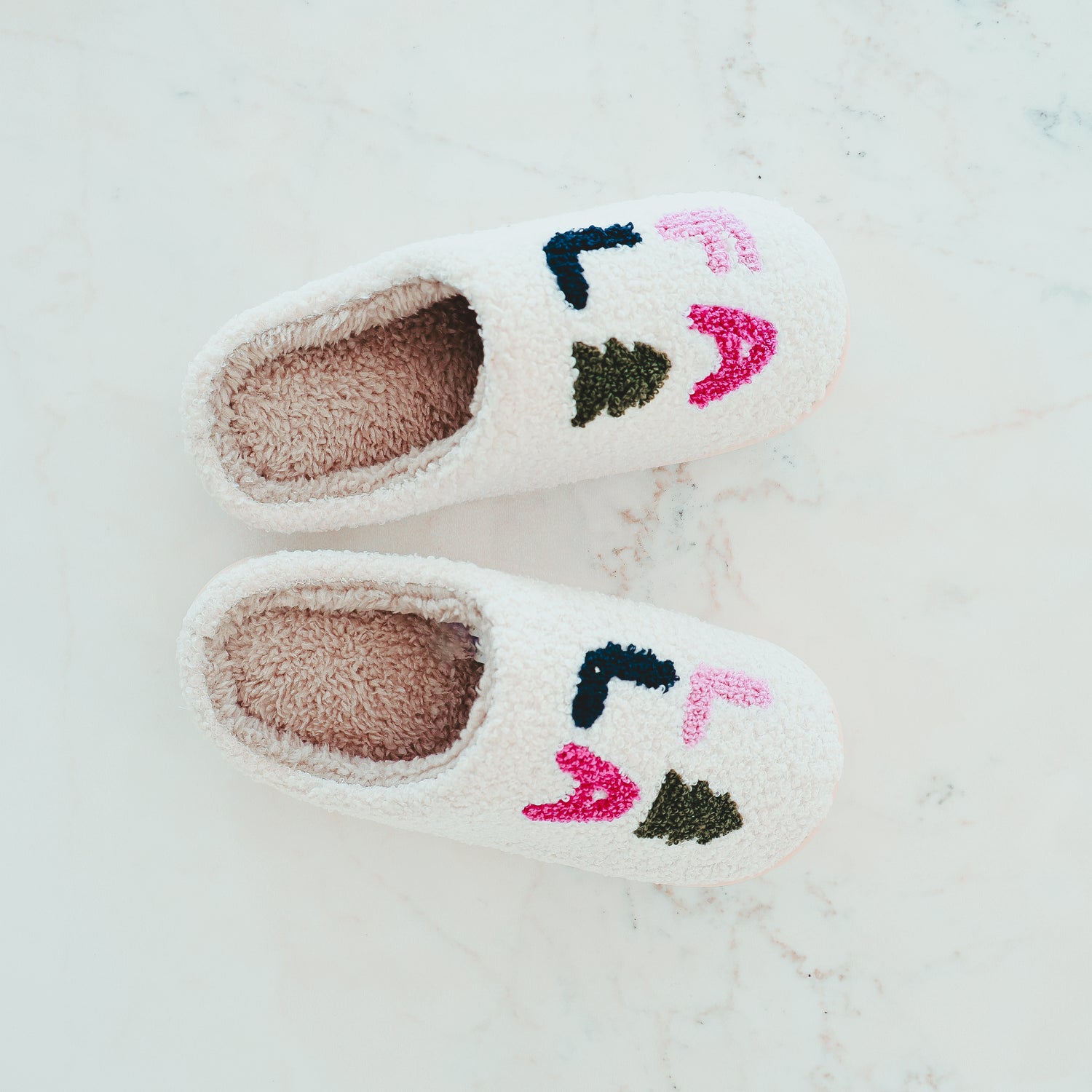 Step into the holiday spirit with our plush "Fa La La La" Holiday Slippers. Made with super soft sherpa fleece and a plush cushioned sole, these house slippers are designed for comfort. The easy slip-on style makes them perfect for cozy nights, gift exchanges, and lounging by the tree, while the rubber sole keeps you safe. Whether you're looking for cozy women's slippers, sherpa house shoes, or a thoughtful gift, these slippers are a must-have. Want to elevate your alone time even more? Check out our Signature Plush Bathrobes for a truly custom holiday experience!