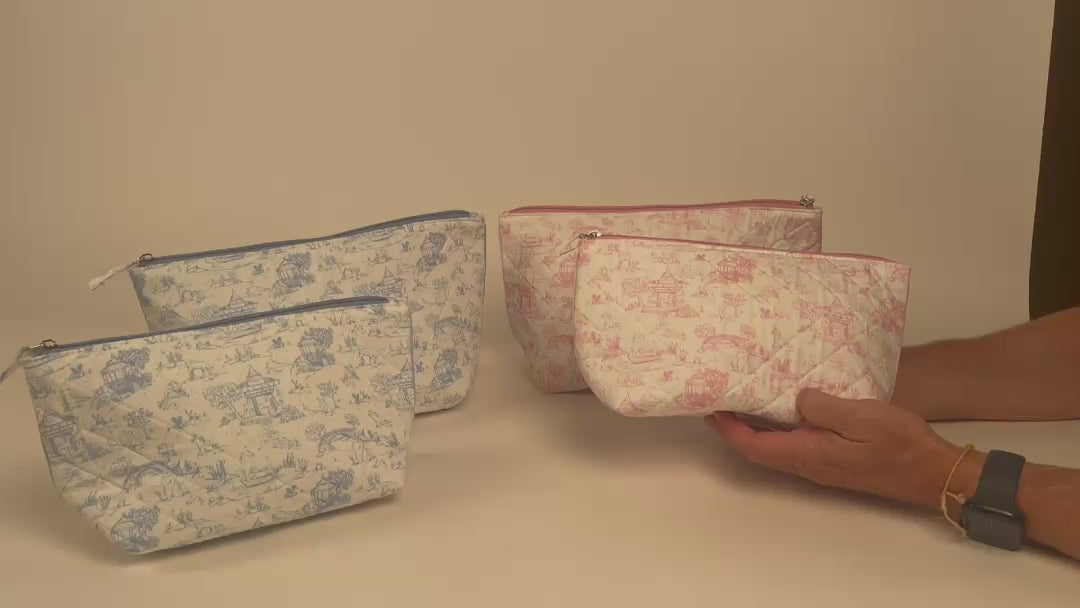 Our Quilted Pouch collection features a durable quilted fabric that’s soft to the touch, and a beautiful toile pattern, making it a stylish addition to your day. Add a monogram to make it more personal. This makes a great baby shower gift as well!
